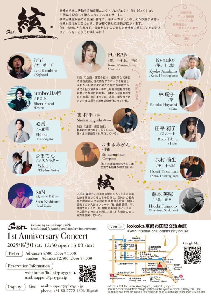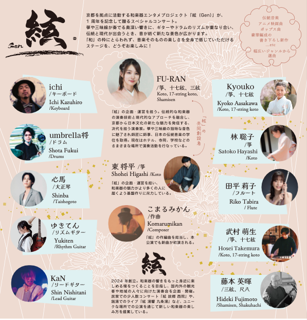 京都を拠点に、和楽器の新しい楽しみ方を提案するエンターテイメントプロジェクト「絃 (Gen)」が、おかげさまで1周年を迎えることができました。